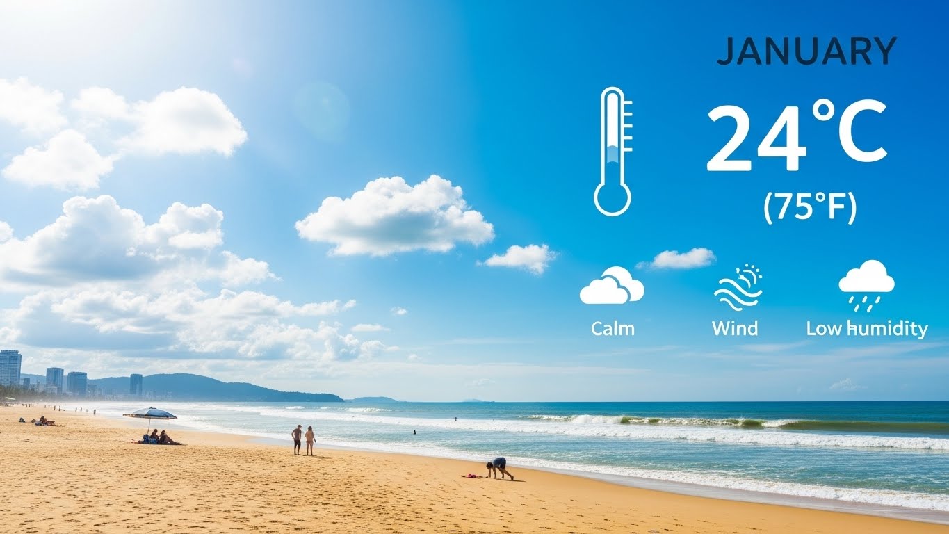 1월의 다낭은 연중 가장 쾌적한 날씨를 자랑해요. 건기에 들어섰기 때문에 비도 적고, 습도도 낮으며, 햇빛도 적당해서 야외 활동하기에 정말 좋아요. 평균 기온은 약 24도 정도로, 한국의 초여름 날씨라고 생각하면 돼요.