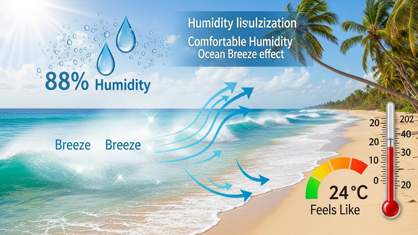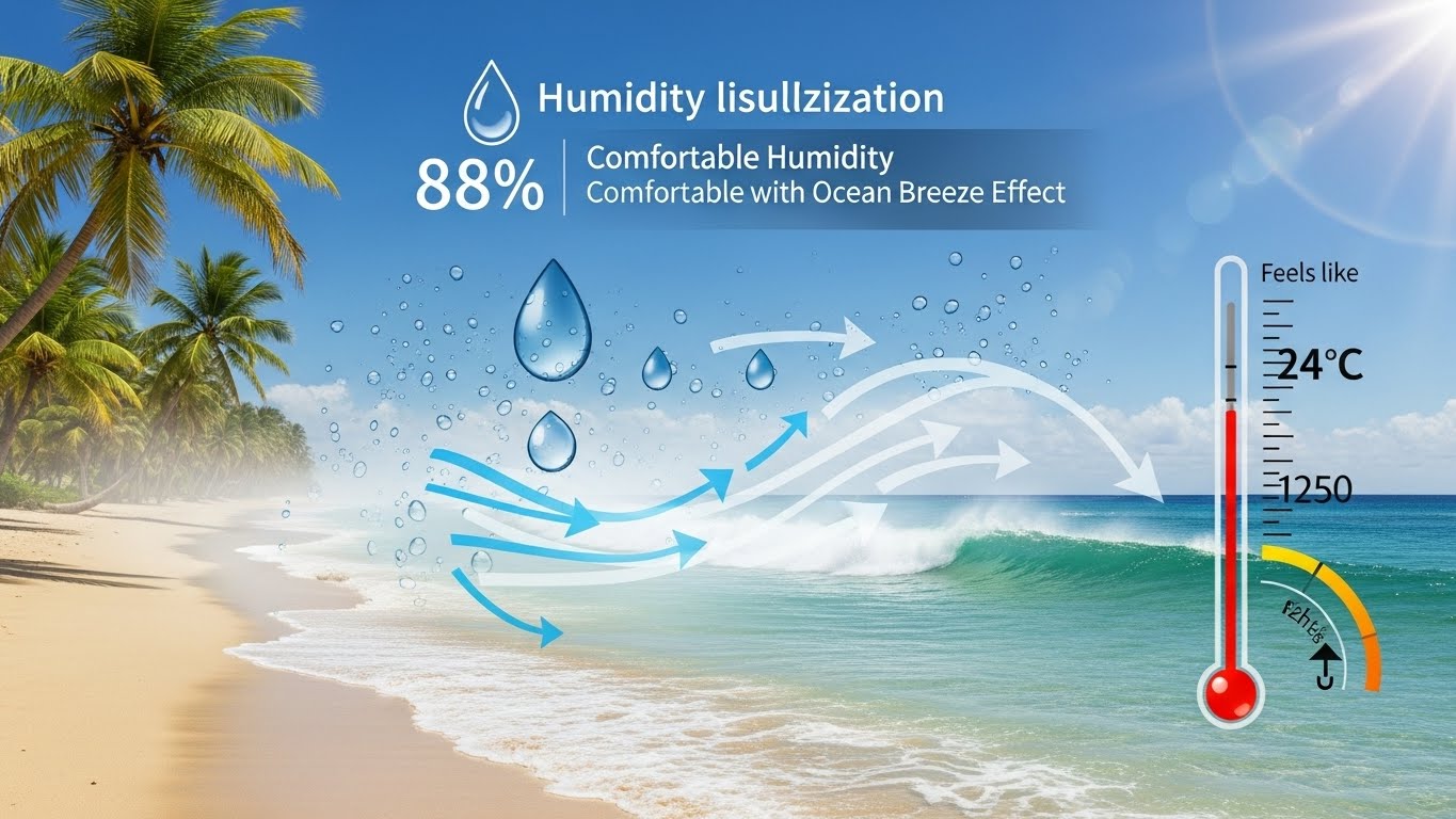 다낭은 해변 도시이다 보니 습도가 높은 편이에요. 1월의 평균 습도는 약 88% 정도로, 실제로는 기온보다 약간 더 습한 느낌을 받을 수 있어요. 하지만 바람이 자주 불어서 그렇게까지 불쾌하지는 않아요. 오히려 바람이 불 때마다 시원한 기분을 느낄 수 있답니다. 햇빛은 강한 편이라 자외선 차단이 필수예요.