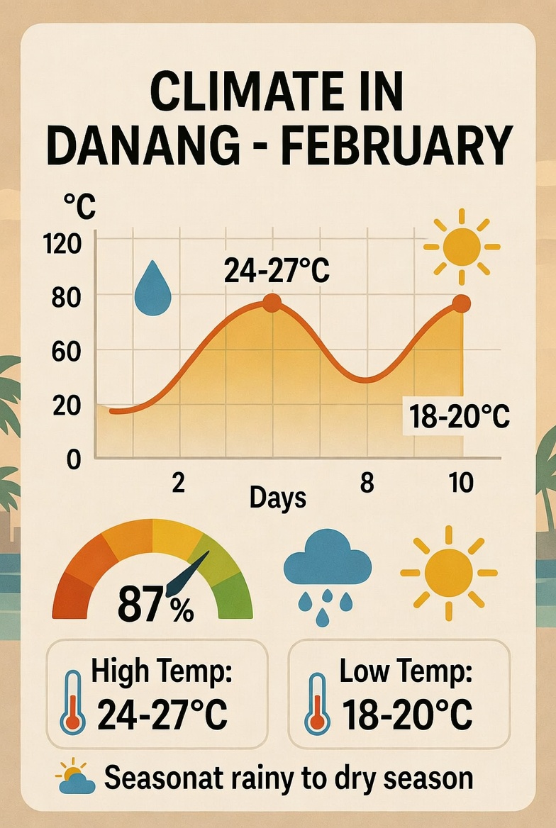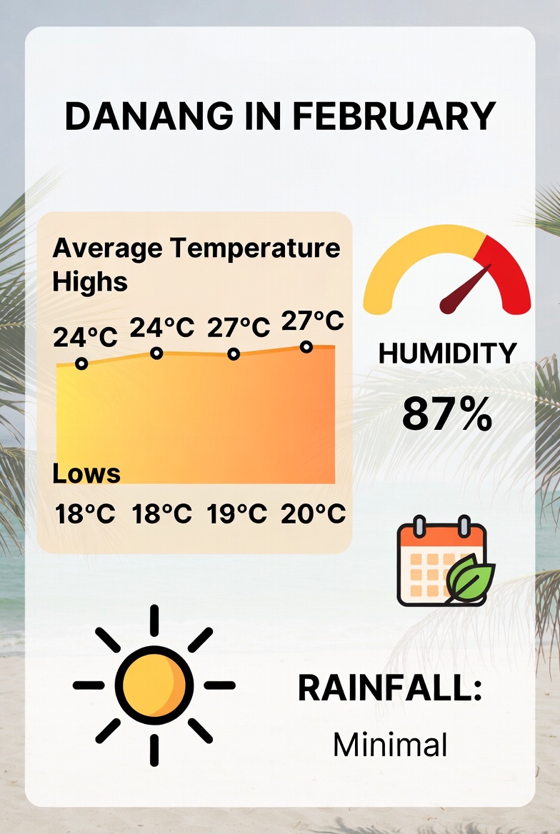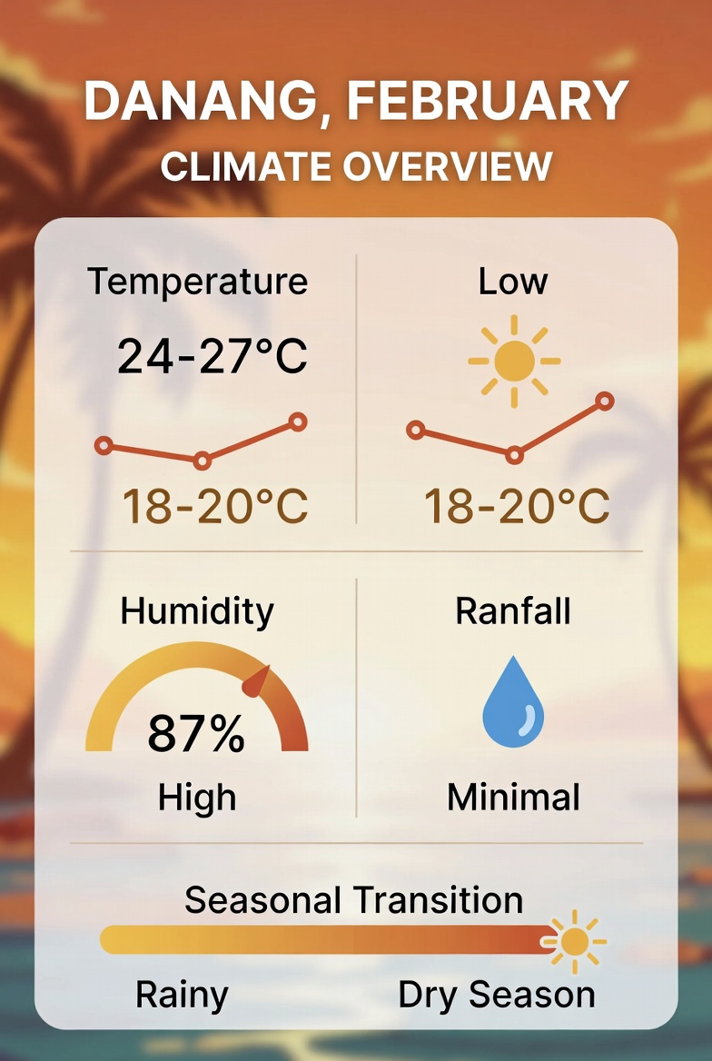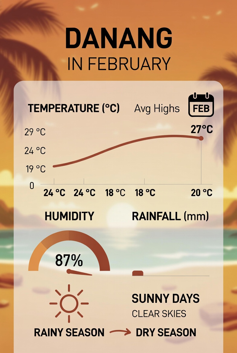 💡 팁: 2월은 다낭의 우기(8월~1월)가 끝나고 건기(2월~7월)로 전환되는 시점입니다. 따라서 비가 거의 오지 않고, 햇빛이 충분해 여행하기 최적의 계절이에요!