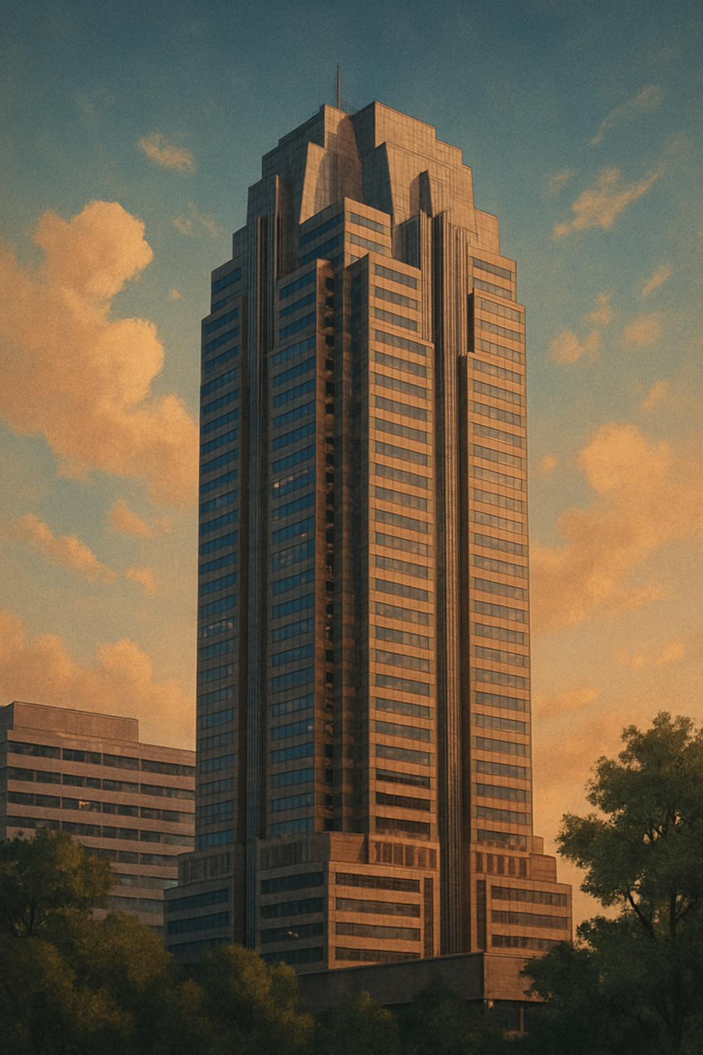 네, 실제로 존재하며 현재는 폭스 플라자라는 이름의 20세기 폭스 사옥이에요. LA에 위치해 있고, 지금도 건물 외관은 영화 속 모습 그대로 남아 있어요.