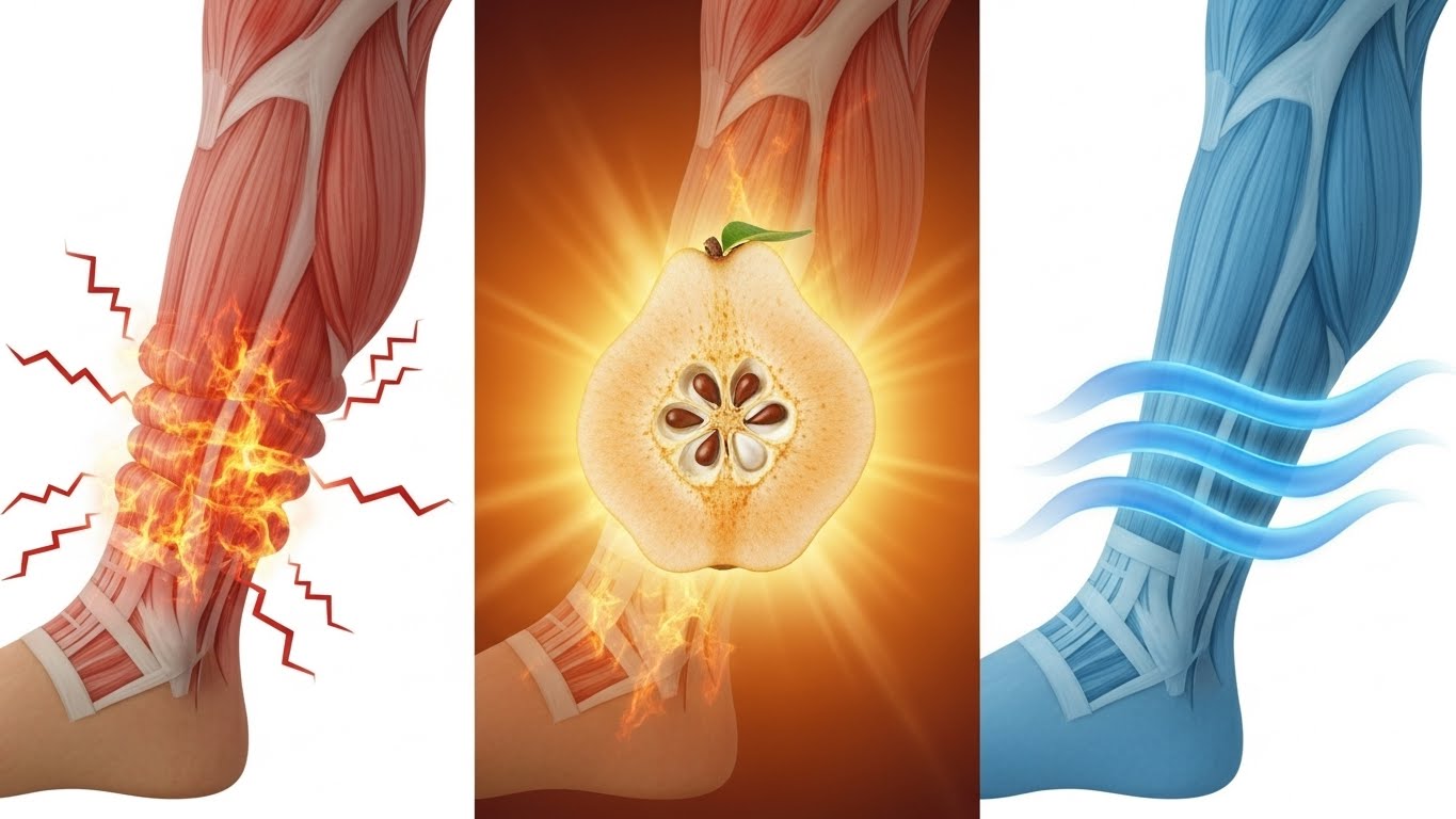 모과는 다리 경련, 근육통, 근경련 완화에 효과적인 것으로 알려져 있습니다. 특히 밤에 종아리에 쥐가 나거나 허리, 목, 어깨 근육이 뻣뻣할 때 모과차를 마시면 근육이 이완되는 경험을 할 수 있습니다. 이는 모과의 유기산과 미네랄 성분이 근육 건강을 지원하기 때문입니다.