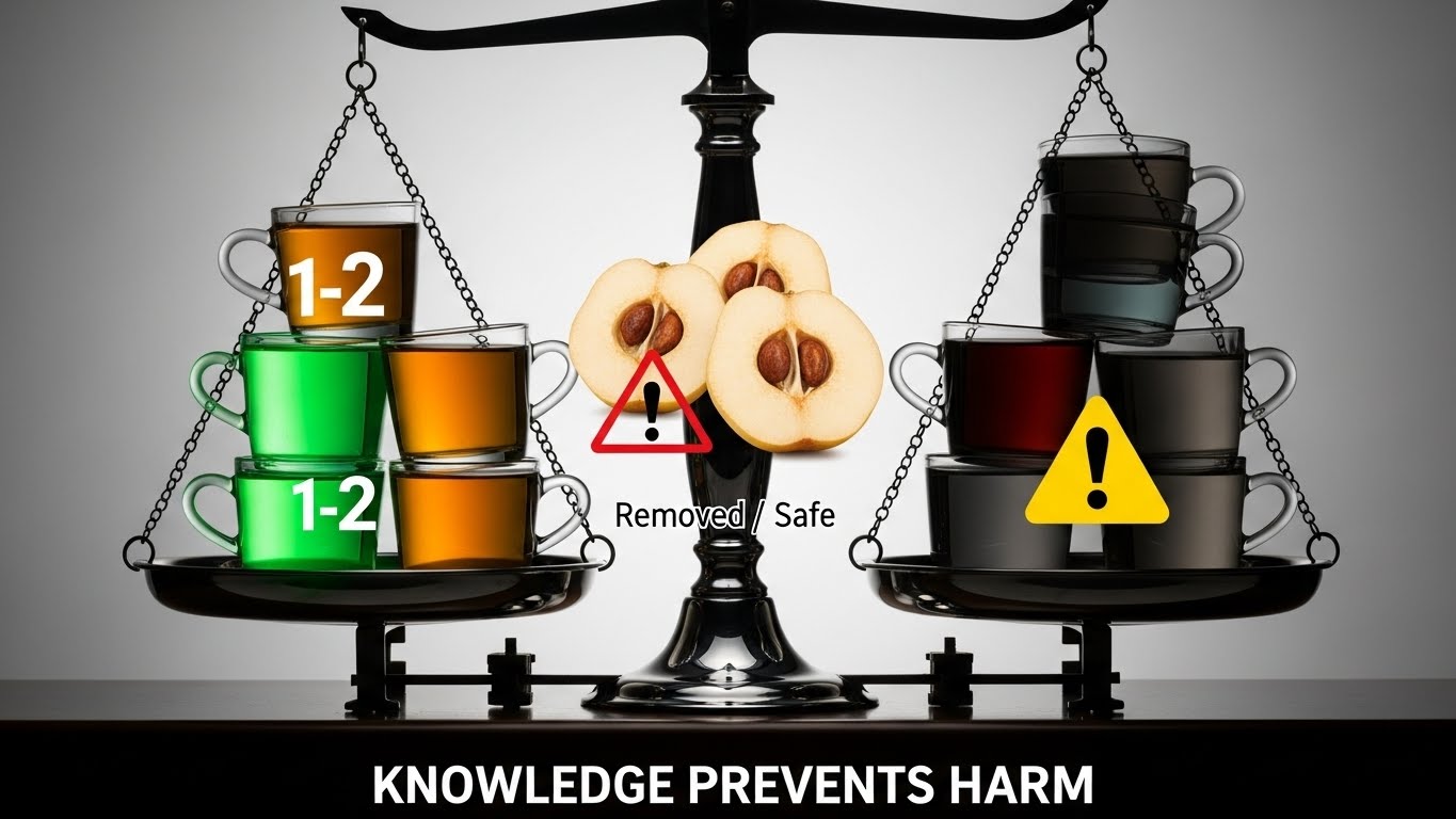 모과의 탄닌 성분은 설사 완화에는 효과적이지만, 과다 섭취 시 체내 수렴 작용을 일으켜 오히려 변비를 악화시킬 수 있습니다. 특히 평소 변비가 있는 사람은 섭취량과 빈도에 주의해야 합니다. 하루 권장 섭취량은 1~2잔의 모과차 정도가 적당합니다.