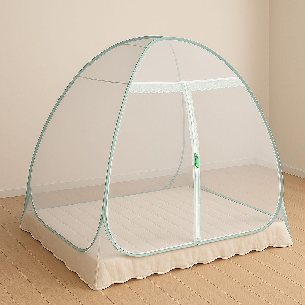 이 모기장은 진짜 몇 초 만에 뚝딱 설치가 돼요. 복잡한 조립 없이 팝업처럼 탁 펴지니까, 늦은 밤 갑작스러운 모기 습격에도 바로 대응 가능하죠.