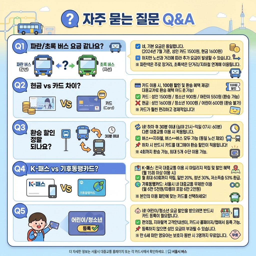 ❓ Q1: 파란 버스와 초록 버스 요금이 같다고요?