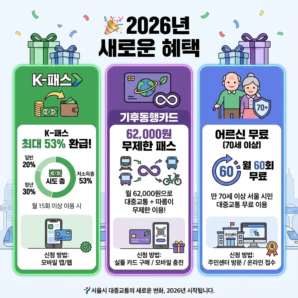 2026년부터 새로운 교통 혜택 제도들이 시작됐어요! 🎉 정부에서 지원하는 혜택을 받으면 교통비를 정말 많이 아낄 수 있답니다.