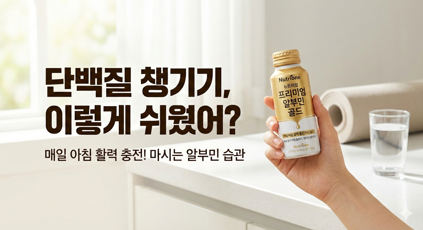 그러다 발견한 뉴트리원 프리미엄 알부민 골드! 계란 흰자에서 추출한 단백질을 액상으로 만든 ‘마시는 알부민’이라 깔끔하고 간편하게 챙기기 좋았어요.