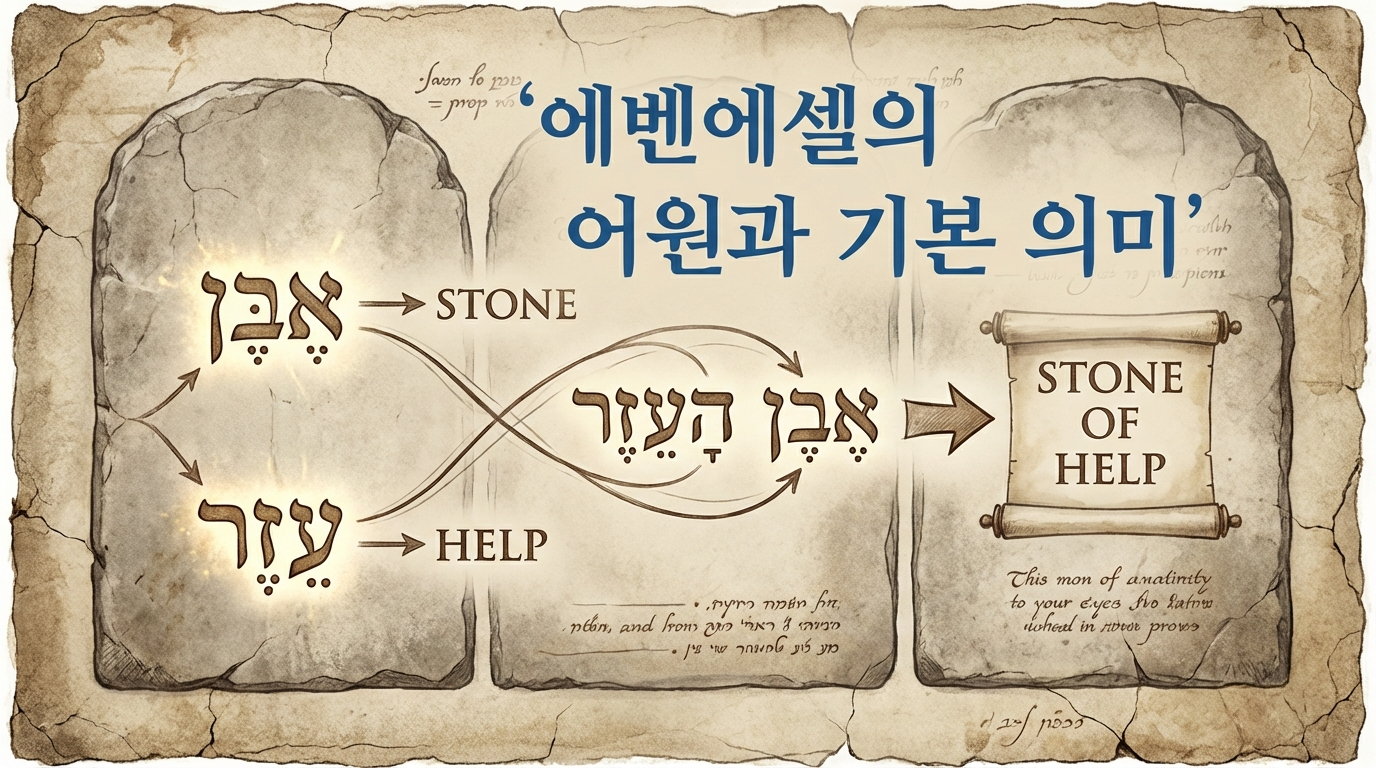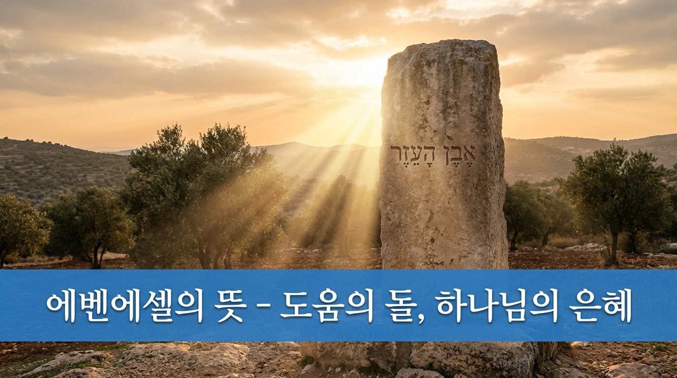 에벤에셀은 두 개의 히브리어 단어가 결합된 것입니다. "에벤(אֶבֶן)"은 '돌'을 의미하고, "에젤(עָזֶר)"은 '도움' 또는 '돕다'라는 뜻이에요. 따라서 문자 그대로 번역하면 "도움의 돌" 또는 "호위의 돌"이라고 할 수 있습니다. 이 두 단어의 결합은 물리적인 돌과 정신적인 도움을 함께 담고 있어서, 하나님의 구체적인 은혜를 기념하는 의미를 지니고 있어요.