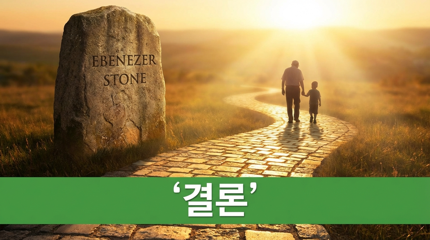 과거의 에벤에셀을 기억하는 것은 미래에 대한 확신을 주어요. 지금까지 하나님이 나를, 우리를 도우셨다면, 앞으로도 도우실 것이라는 믿음이 생기는 것입니다. 이것이 바로 신앙의 선순환 구조예요. 과거의 도움을 기억하고 감사할 때, 현재의 어려움 속에서도 희망을 잃지 않을 수 있고, 미래를 향해 담대하게 나아갈 수 있습니다. 이러한 신앙의 확신은 우리 인생의 가장 큰 자산이 되는 것이죠.