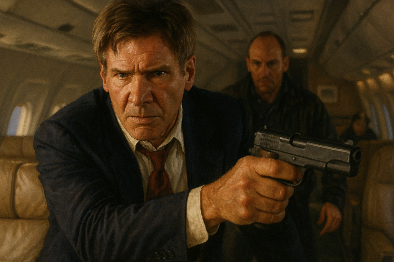 《에어 포스 원》의 가장 큰 특징은 주인공이 다름 아닌 현직 대통령이라는 점이에요. 미국 대통령이 가족과 참모진을 태운 채 테러리스트에게 납치당하고, 극한 상황 속에서 대통령이 직접 무기를 들고 전투에 나선다는 설정은 90년대 당시에도 파격이었고, 지금 봐도 꽤나 신선하게 다가와요.