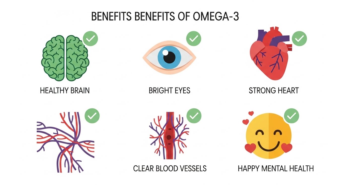 오메가3가 뇌의 염증 반응을 줄여 뇌세포를 보호하고 신경 전달을 원활하게 하므로 우울증과 스트레스 완화에 도움이 됩니다. 현대인의 정신 건강 관리에 중요한 역할을 합니다.