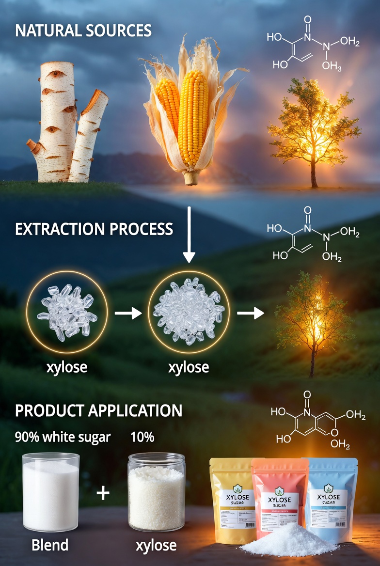 자일로스는 나무, 옥수숫대, 자작나무 등 천연 식물에서 추출되는 당알콜이에요. 🌿 가장 특이한 점은 체내에서 설탕이 포도당과 과당으로 분해되는 것을 억제한다는 거죠! ✨