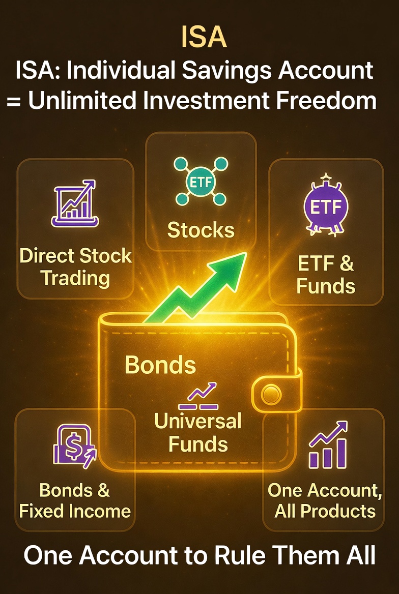 ISA는 Individual Savings Account의 줄임말로, 우리말로는 개인종합자산관리계좌예요. 📌 쉽게 말하면 주식·ETF·펀드·채권 같은 다양한 금융상품을 딱 하나의 계좌에서 한꺼번에 굴릴 수 있는 통장이에요.
