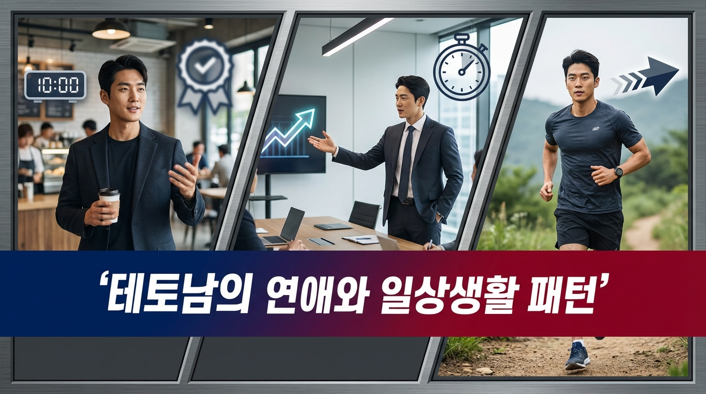 테토남은 보통 운동을 즐기고, 피부나 외모에는 크게 신경 쓰지 않는 편이에요. 대신 자기 관리나 체력 관리에는 철저한 성향을 보여요. 독서도 자기계발서나 경제경영서를 선호하고, 여행도 "가서 뭘 할 건데?"라고 목적을 먼저 정하는 스타일이에요. 감상이나 휴식보다는 '효율성'을 중시한다고 할 수 있어요.