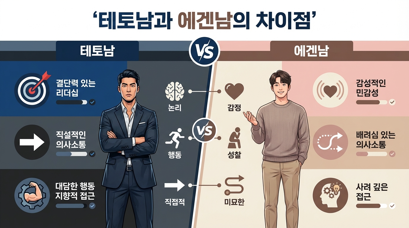 요즘 MZ세대 사이에서 자주 들리는 '테토남'이라는 말, 혹시 들어보셨나요? 남성호르몬과 관련된 성격 유형을 설명하는 신조어로, 주도적이고 직설적인 남성을 일컫는답니다. 이 글에서는 테토남의 정확한 뜻부터 특징, 그리고 에겐남과의 차이까지 40대 엄마의 시각에서 쉽게 설명해드릴게요. 자녀의 친구들이나 주변 사람들을 더 잘 이해하는 데 도움이 될 거예요.