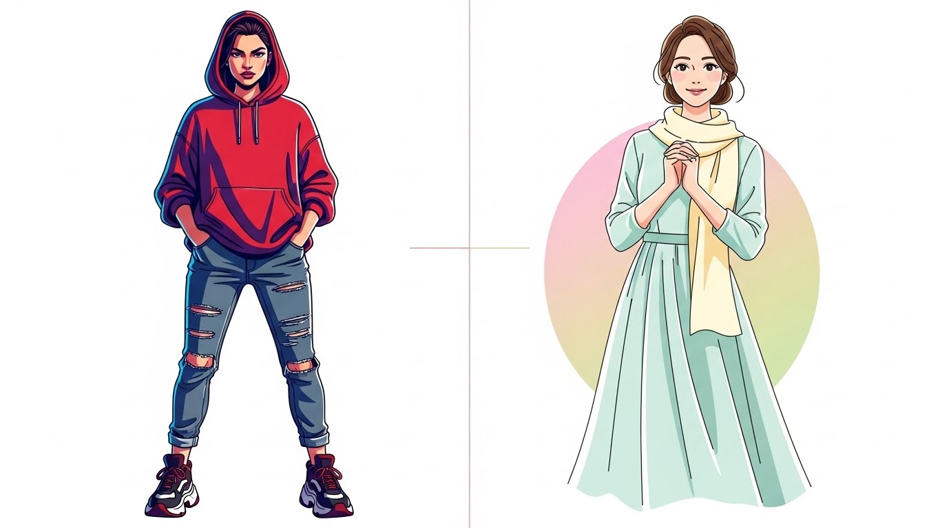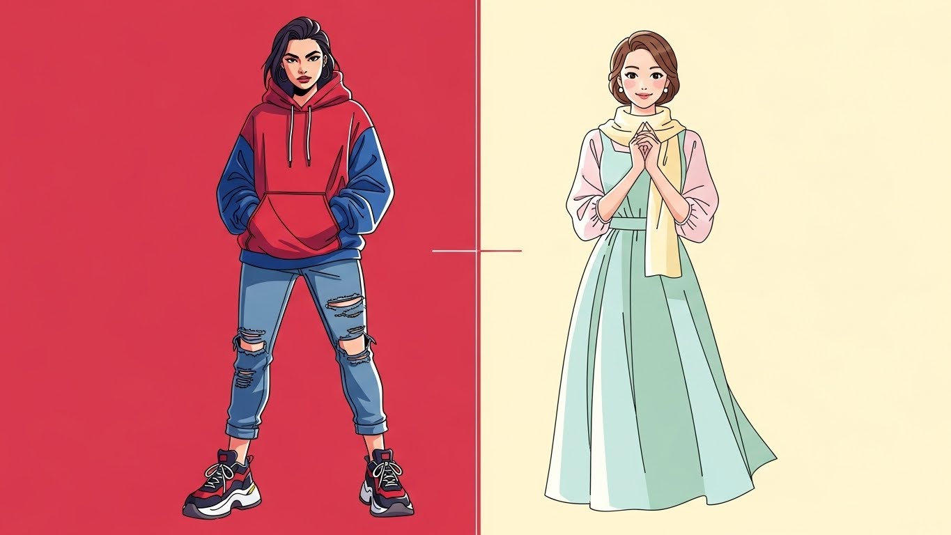 | 패션 스타일 | 캐주얼, 편한 옷 | 페미닌, 우아한 옷 |