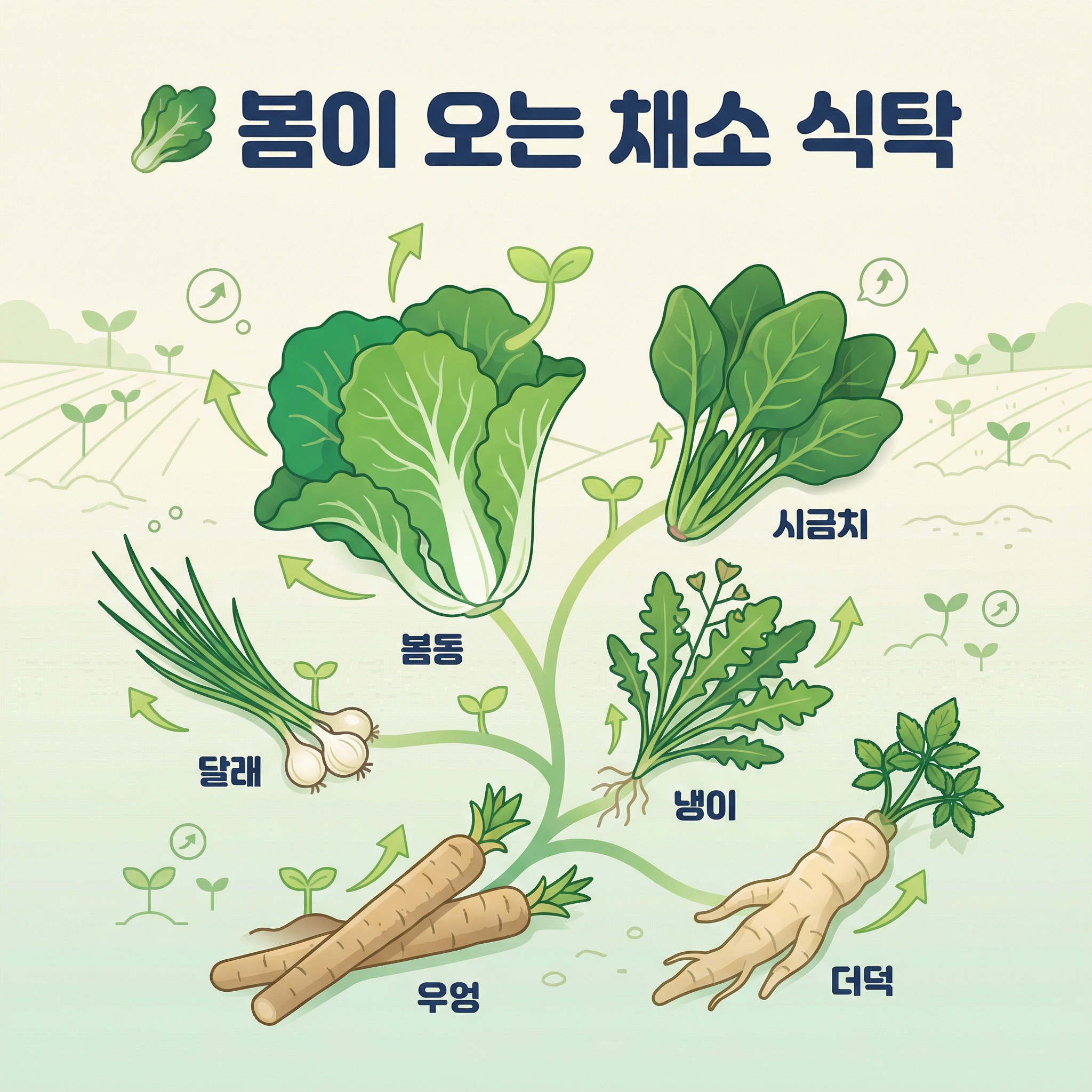 2월 채소의 핵심은 딱 두 글자예요. 봄나물! 🌱 아직 추위가 남아있지만, 땅 속에서는 이미 봄이 시작됐거든요.