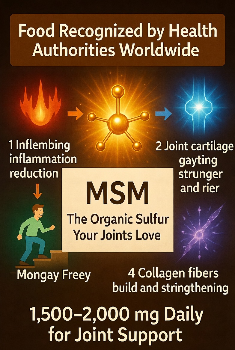 무릎이 시큰거리고 계단 오를 때마다 "아이고" 소리가 절로 나오는 분들이라면 더욱 주목! 📢 MSM은 식약처에서도 관절과 연골 건강에 도움을 줄 수 있다고 인정한 성분입니다.